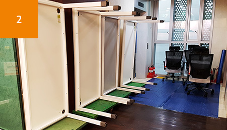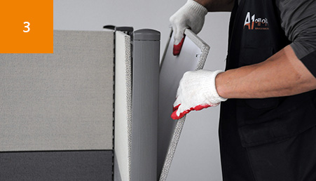 파티션 및 책상부터 반입작업 진행