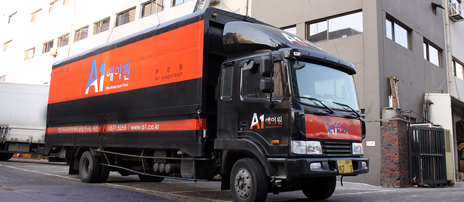 작업환경에 따라서 1TON/2.5TON/5TON 차량으로 운송작업 진행